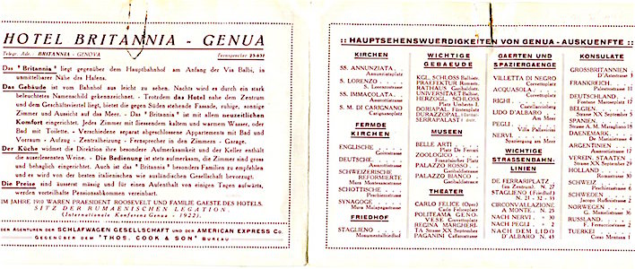 Italy Genoa Hotel Britannia Brochure 1932 Back