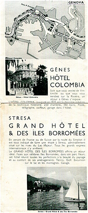 Italy Genoa Hotel Colombia Leaflet 1935 Back