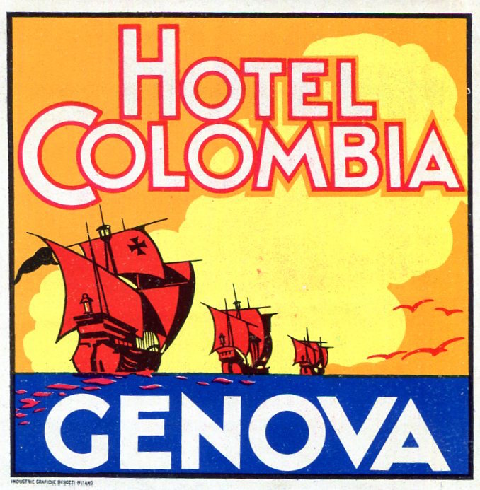 Italy Genoa Hotel Colombia Luggage Label 1935