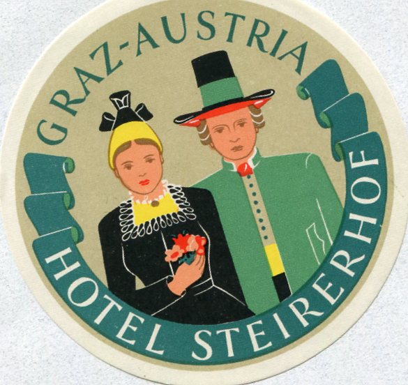 Austria Graz Hotel Steirerhof Luggage Label 1930