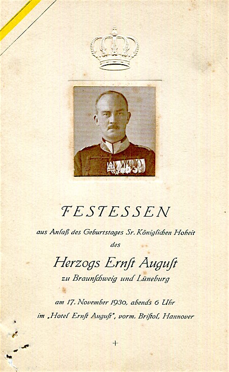 Germany Hannover Hotel Ernst August Menu 1930-2 Front