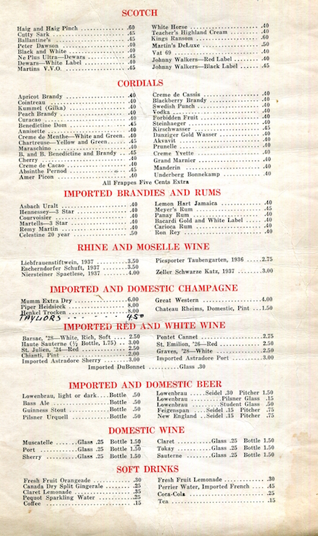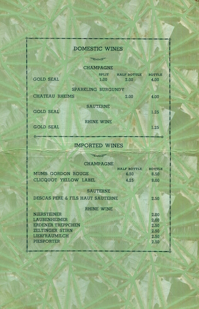 • USA Connecticut Hartford Wine Menu Restaurant Edrich 1941 Inside 2