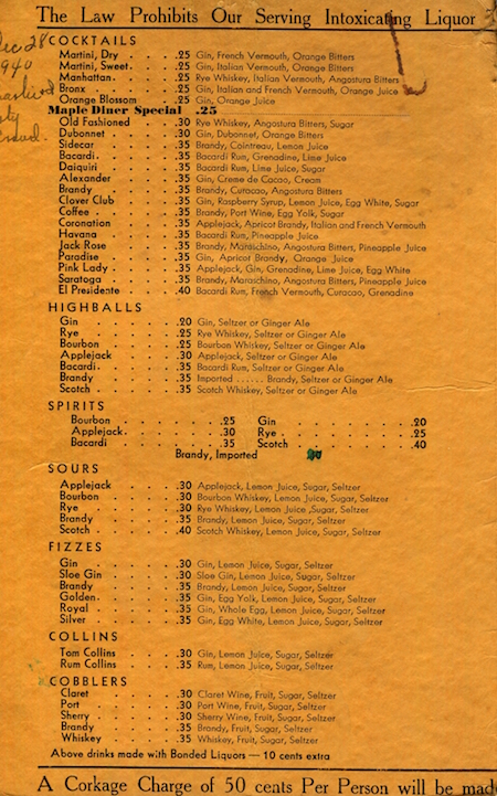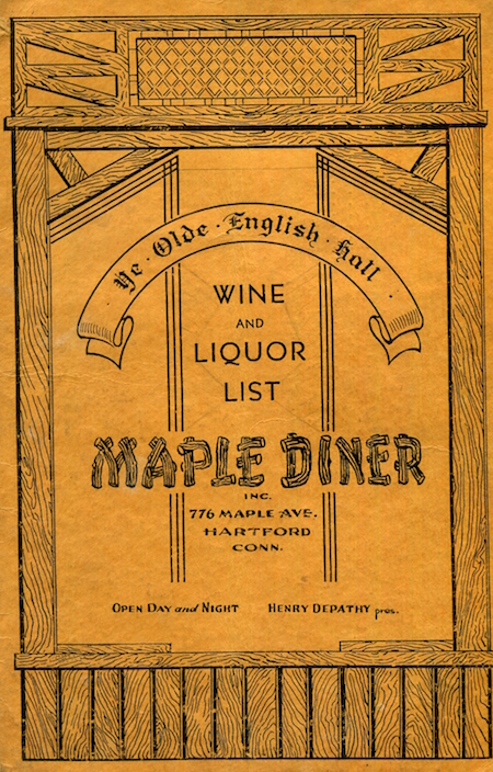 • USA Connecticut Hartford Wine Menu Restaurant Maple Diner 1940 Front