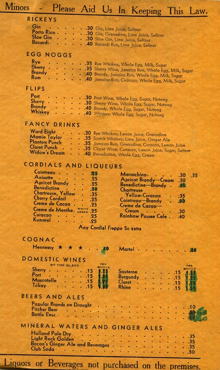 • USA Connecticut Hartford Wine Menu Restaurant Edrich 1941 Inside 1