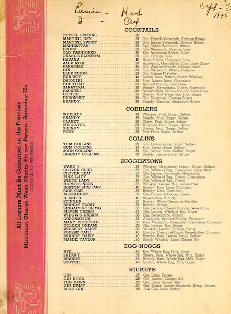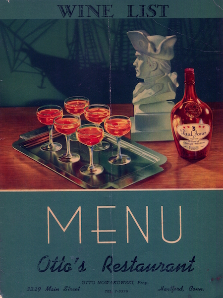 • USA Connecticut Hartford Wine Menu Restaurant Ottos 1940 Front