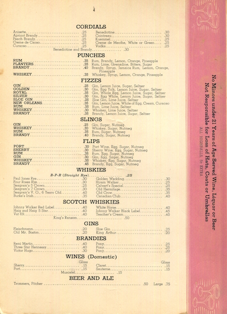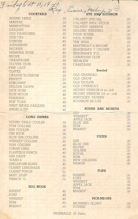 • USA Connecticut Hartford Wine Menu Restaurant The Round Table 1940 Inside 1