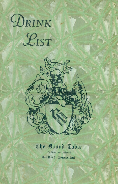 • USA Connecticut Hartford Wine Menu Restaurant The Round Table 1940 Front