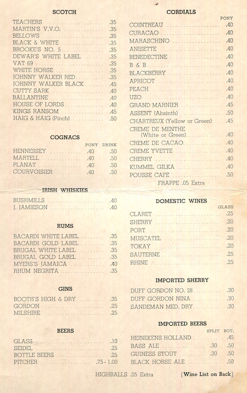 • USA Connecticut Hartford Wine Menu Restaurant Ottos 1940 Inside 1