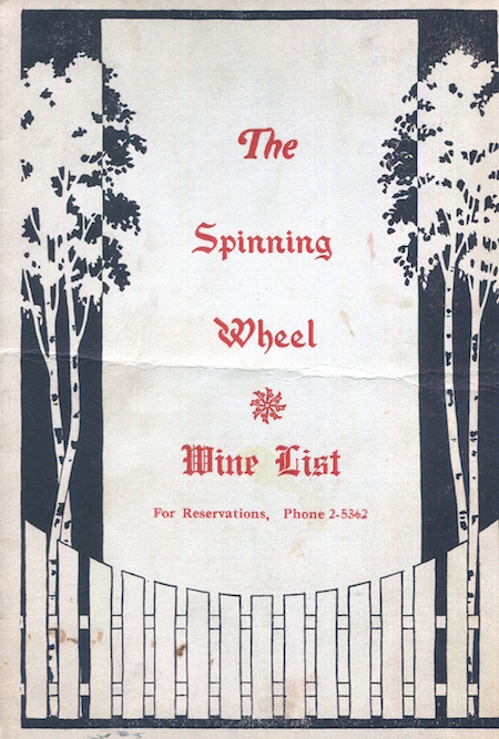 • USA Connecticut Hartford Wine Menu Restaurant The Spinnig Wheel 1940 Front