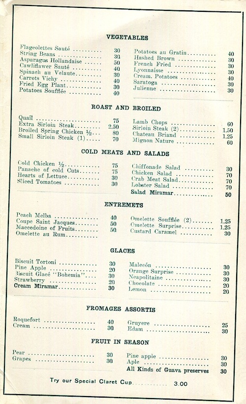 Cuba Havana Hotel Miramar Menu 1928 Inside 2