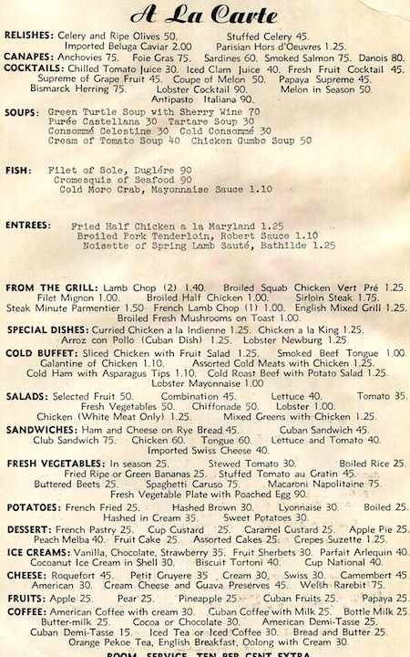 Cuba Havana National Hotel Menu 1939-2 Inside 2