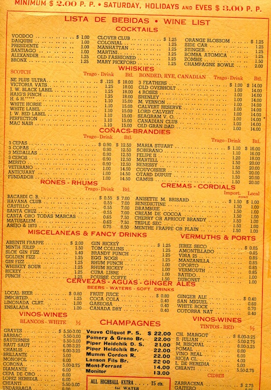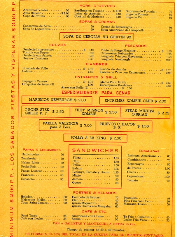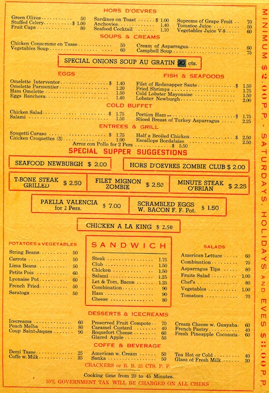Cuba Havana Restaurant Zombie Club Menu 1932 Inside 1