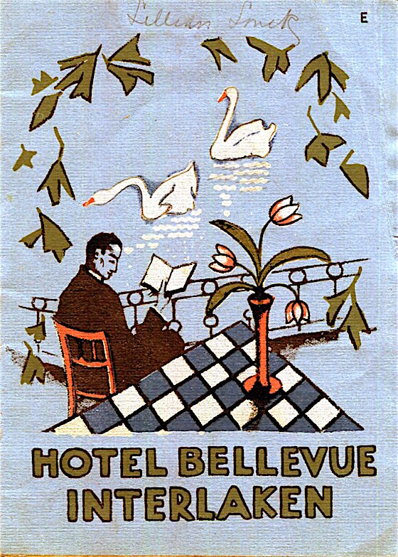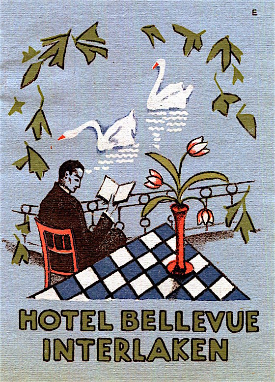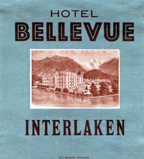 Switzerland Interlaken Hotel Bellevue Luggage Label 1927