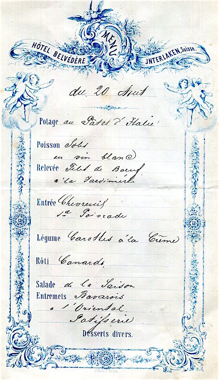 Switzerland Interlaken Hotel Belvedere Menu 1875