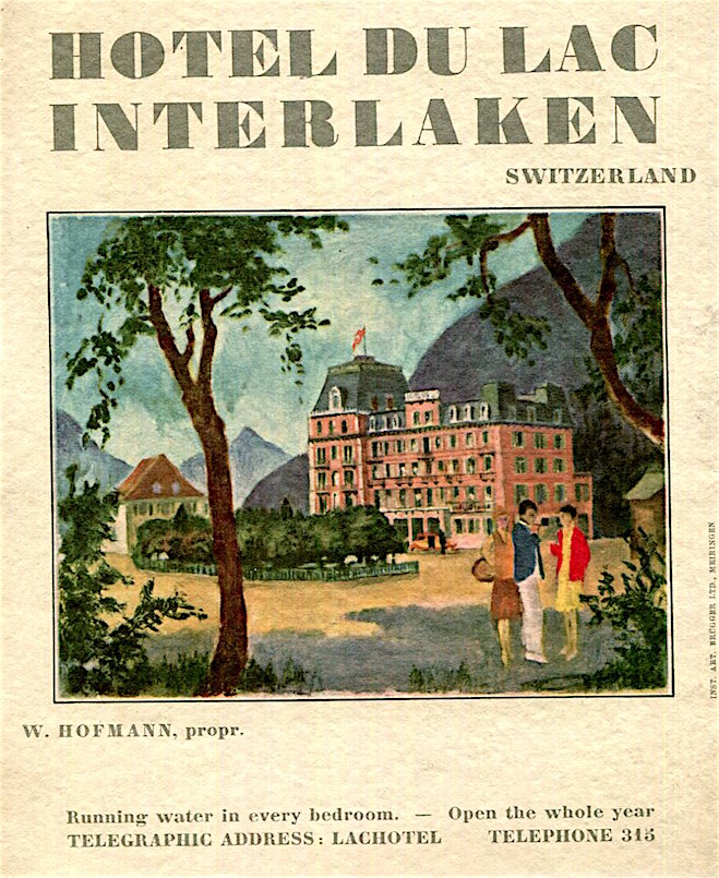 Switzerland Interlaken Hotel Du Lac Brochure 1926 Front