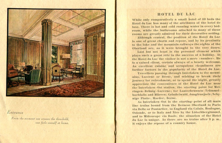 Switzerland Interlaken Hotel Du Lac Brochure 1926 Inside 1
