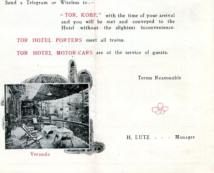 Japan Kobe Leaflet Tor Hotel 1921 Back