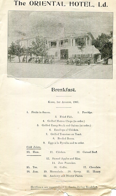 Japan Kobe Menu Oriental Hotel 1907