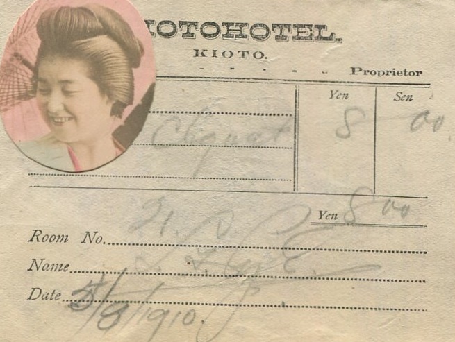 Japan Kyoto Receipt Kyoto Hotel 1910