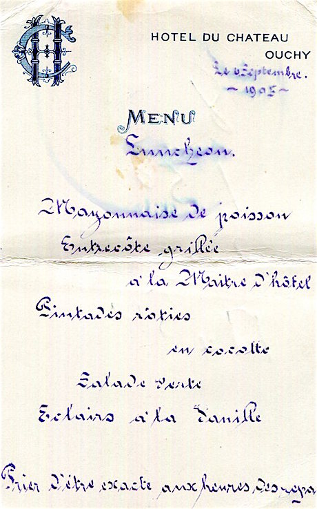 Switzerland Lausanne-Ouchy Hotel Du Chateau Menu 1905