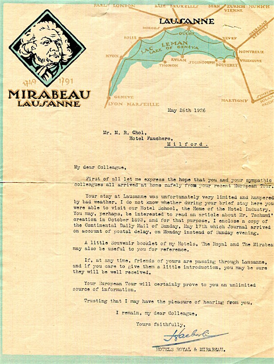 Switzerland Lausanne Hotel Royal & Mirabeau Letter 1926