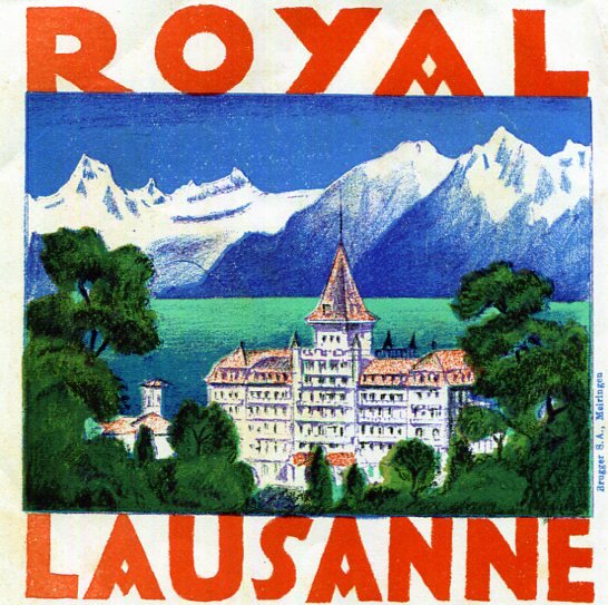 Switzerland Lausanne Hotel Royal Luggage Label 1937