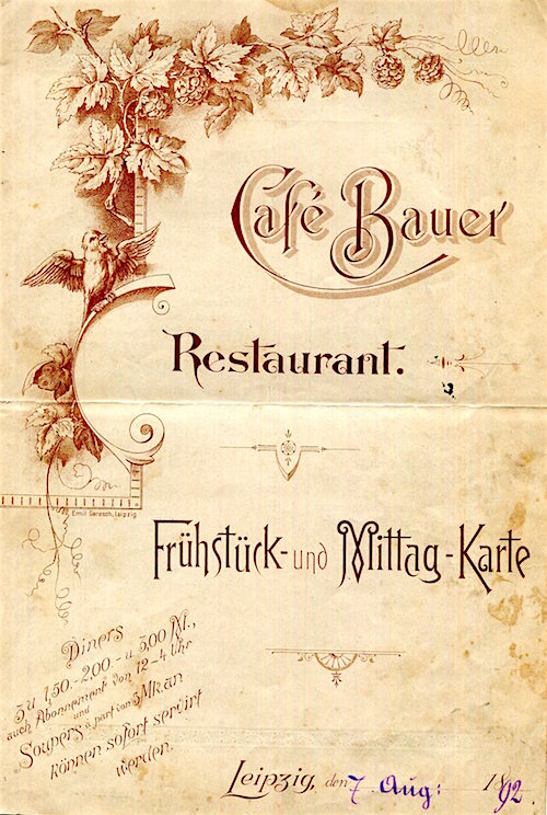 Germany Leipzig Cafe Bauer Menu 1892 Front