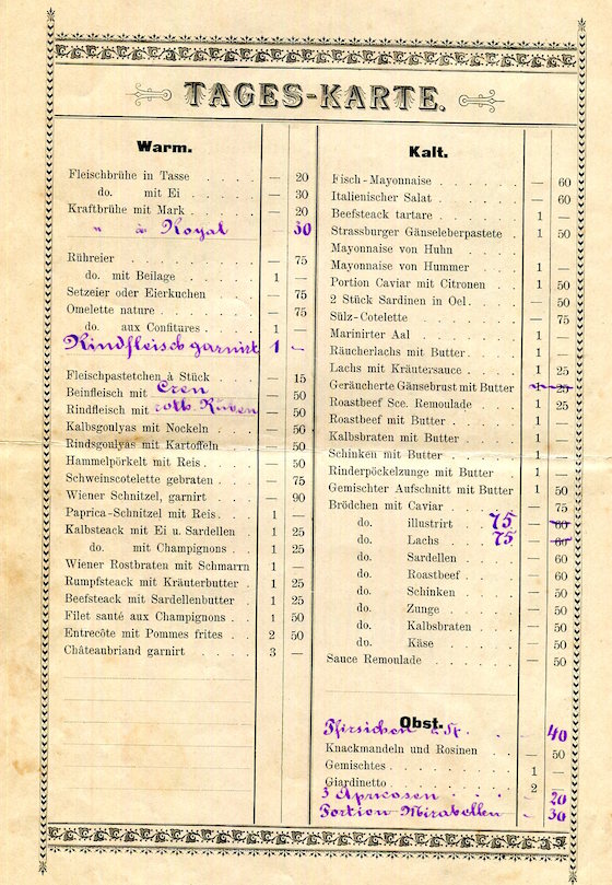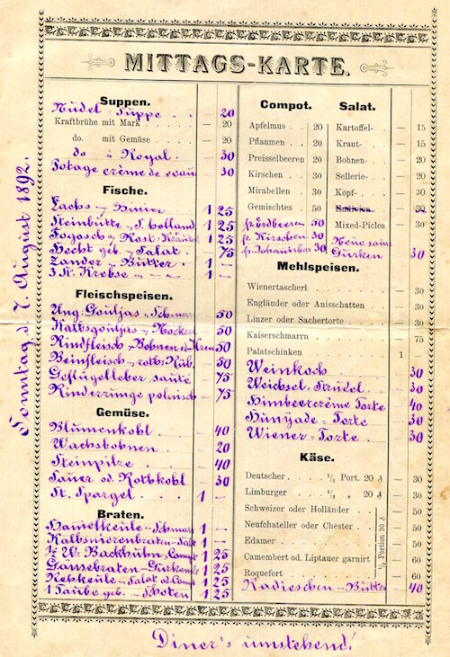 Germany Leipzig Cafe Bauer Menu 1892 Inside 1