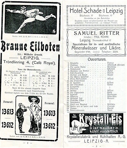 Germany Leipzig Cafe Bauer Music Program 1906 Inside