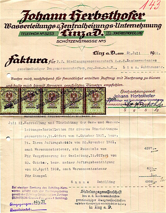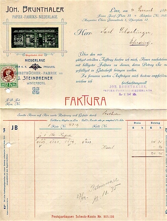 Austria Linz Commerce Johann Herbsthofer Receipt Paper Products 1904