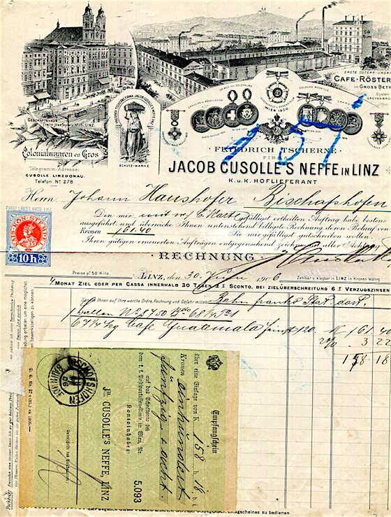 Austria Linz Commerce Jacob Cusollets Receipt 1906