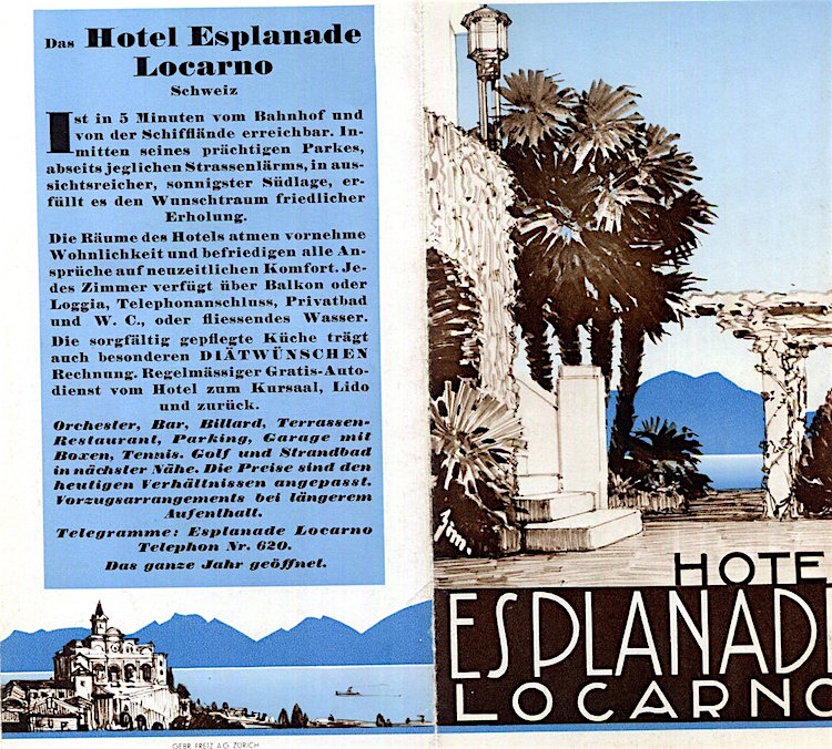 Switzerland Locarno Hotel Esplanade Brochure 1928 Front
