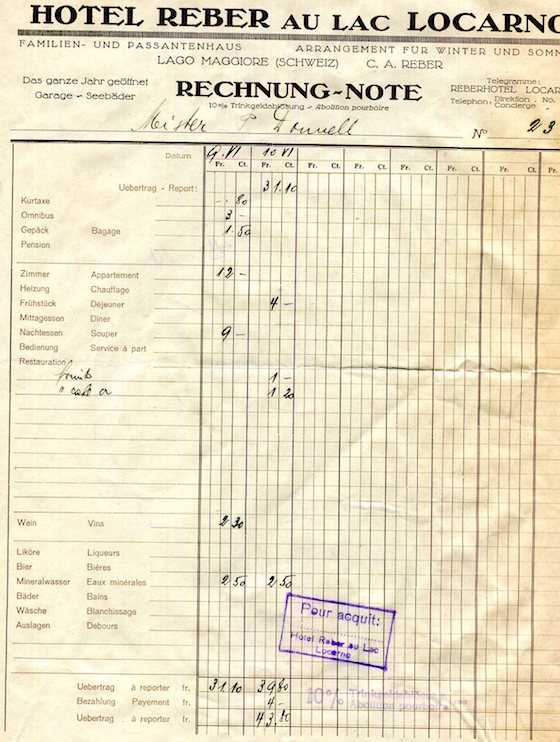 Switzerland Locarno Hotel Reber Au Lac Receipt 1927