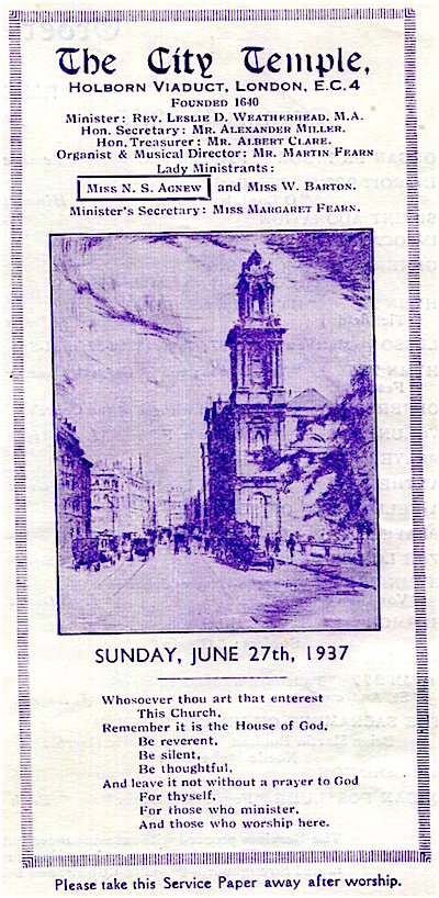 England London City Temple Leaflet 1937