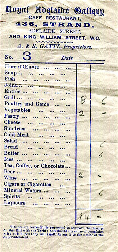 England London Royal Adelaide Gallery Cafe Restaurant Receipt 1897