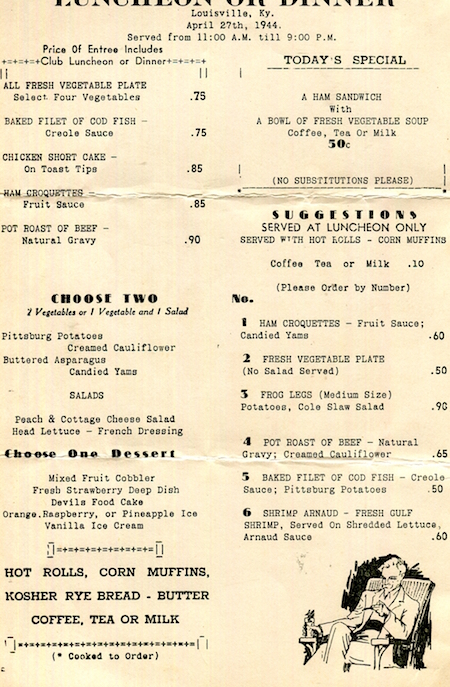 USA Kentucky Louisville Menu Hotel Canary Cottage 1944 Inside 1