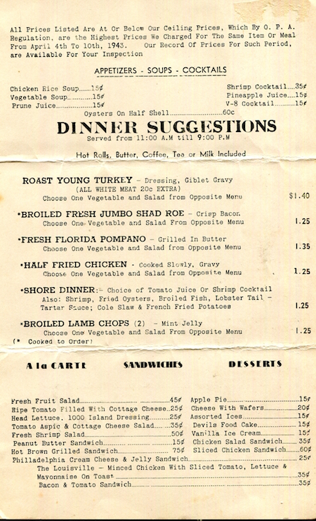 USA Kentucky Louisville Menu Hotel Canary Cottage 1942 Inside 1