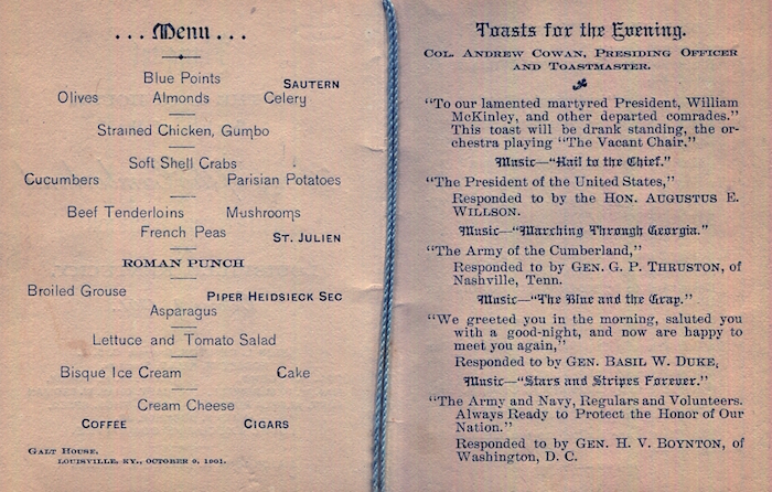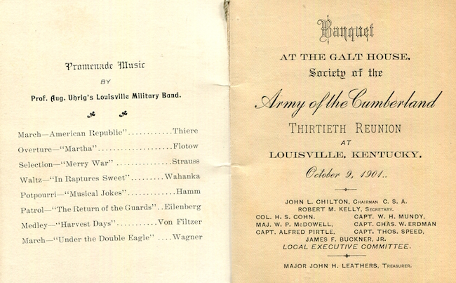 USA Kentucky Louisville Menu Hotel Galt House Army Of The Cumberland 1901 Inside 2
