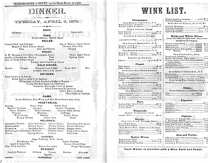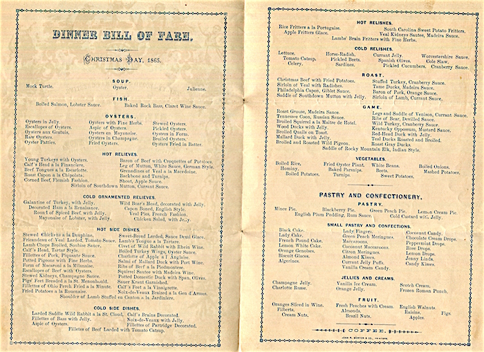 USA Kentucky Louisville Menu Hotel Louisville Chrismas Day 1865 Inside