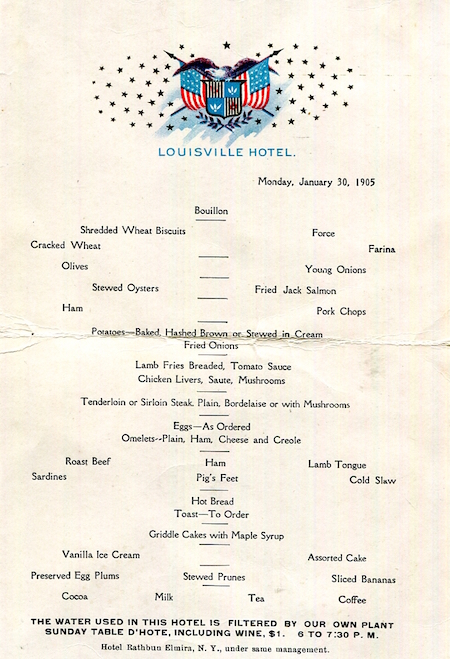 USA Kentucky Louisville Menu Hotel Louisville 1905