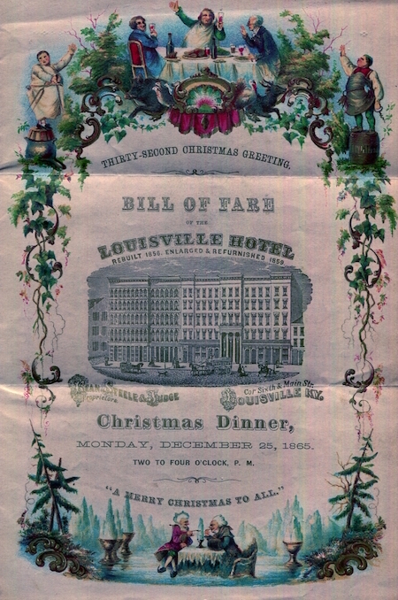USA Kentucky Louisville Menu Hotel Louisville Chrismas Day 1865 Front