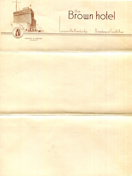 USA Kentucky Louisville Stationery Hotel Brown 1930