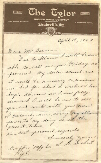 USA Kentucky Louisville Stationery Hotel The Tyler 1929