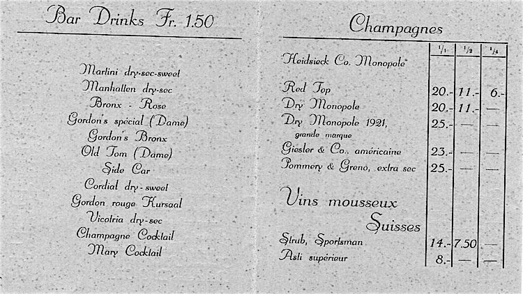 Switzerland Lucerne Entertainment Kursaal Coctail Menu 1930 Back