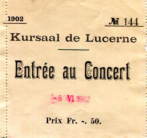 Switzerland Lucerne Entertainment Kursaal Ticket 1902