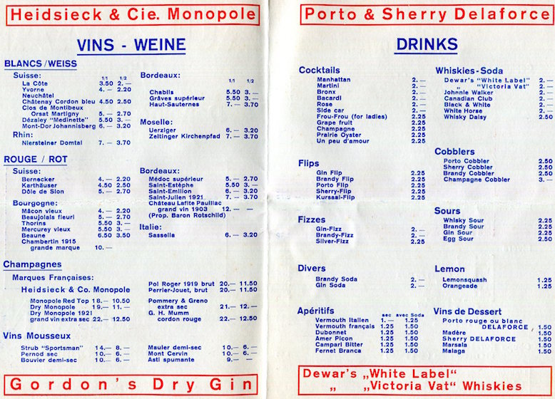 Switzerland Lucerne Entertainment Kursaal Wine Menu 1935 Back