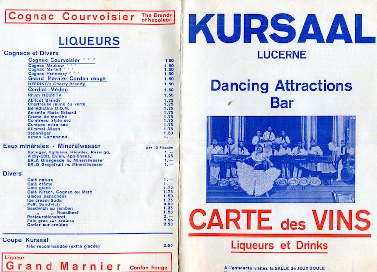 Switzerland Lucerne Entertainment Kursaal Wine Menu 1935 Front