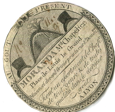 France Lyon Commerce Moranda Business Card Hatter 1855