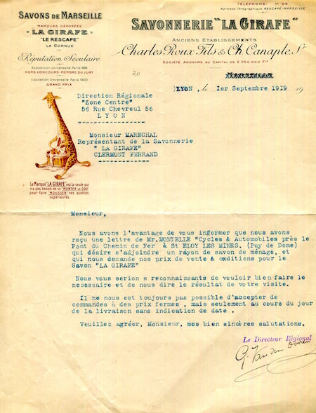 France Lyon Commerce Savonnerie La Gitafe Letter Soap 1919