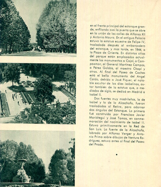 Spain Madrid Brochure El Retiro 1933 Inside 2